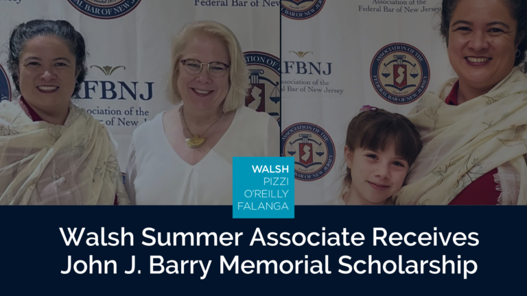 The John J. Barry Memorial Scholarship is awarded to one law student from each of New Jersey’s three law schools, underscoring the Association’s commitment to the development of New Jersey’s legal community. Walsh Pizzi O’Reilly Falanga LLP would like to congratulate not only Carmen, but also the other two recipients, Luke D. Hertzel and Anna Maria Giblin, on their remarkable achievement.